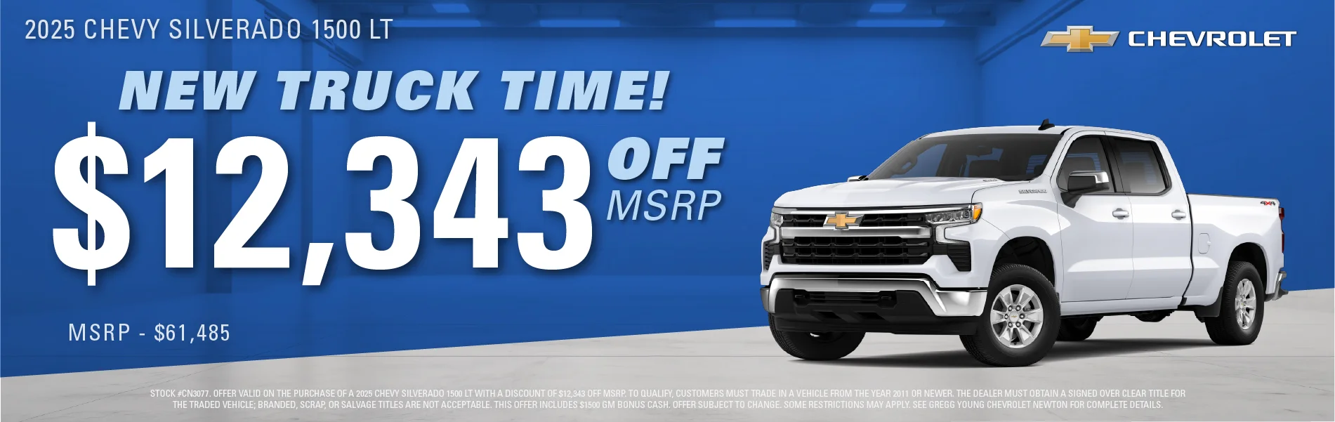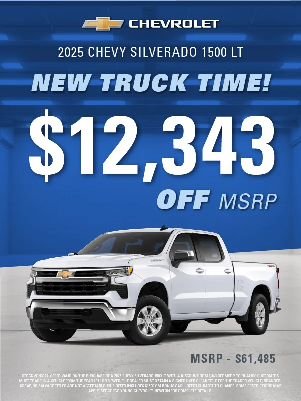 At Gregg Young Chevrolet Newton, we’re proud to be Iowa’s trusted Chevrolet dealership, offering a complete lineup of new Chevy cars, trucks, and SUVs alongside quality used and certified pre-owned vehicles. Conveniently located near Des Moines, Ames, and Pella, our dealership provides a hometown buying experience with big-city savings. Whether you’re searching for a Chevy Silverado 1500, Equinox, or Traverse, you’ll find competitive prices, flexible financing, and friendly service from a team that truly cares.